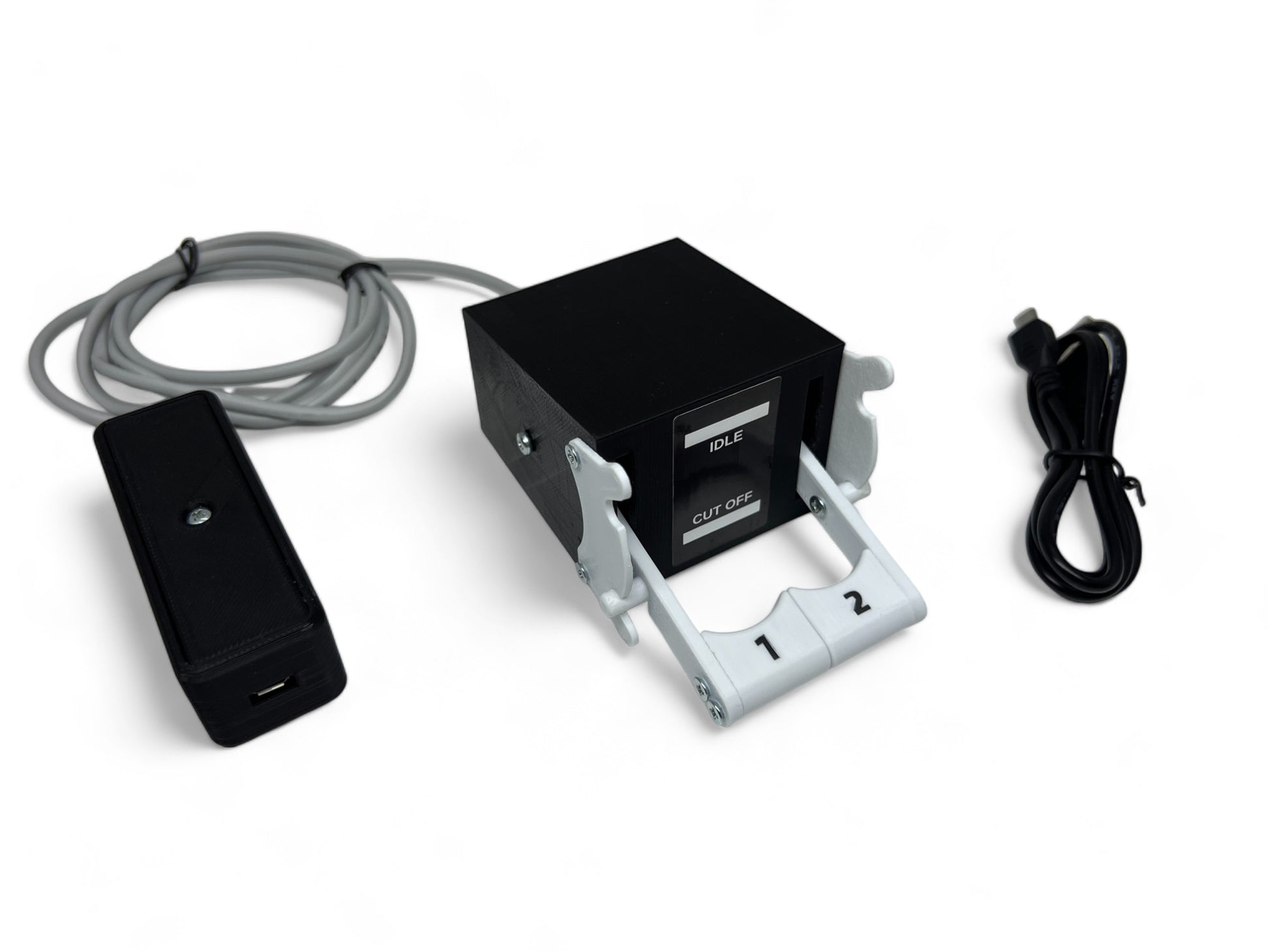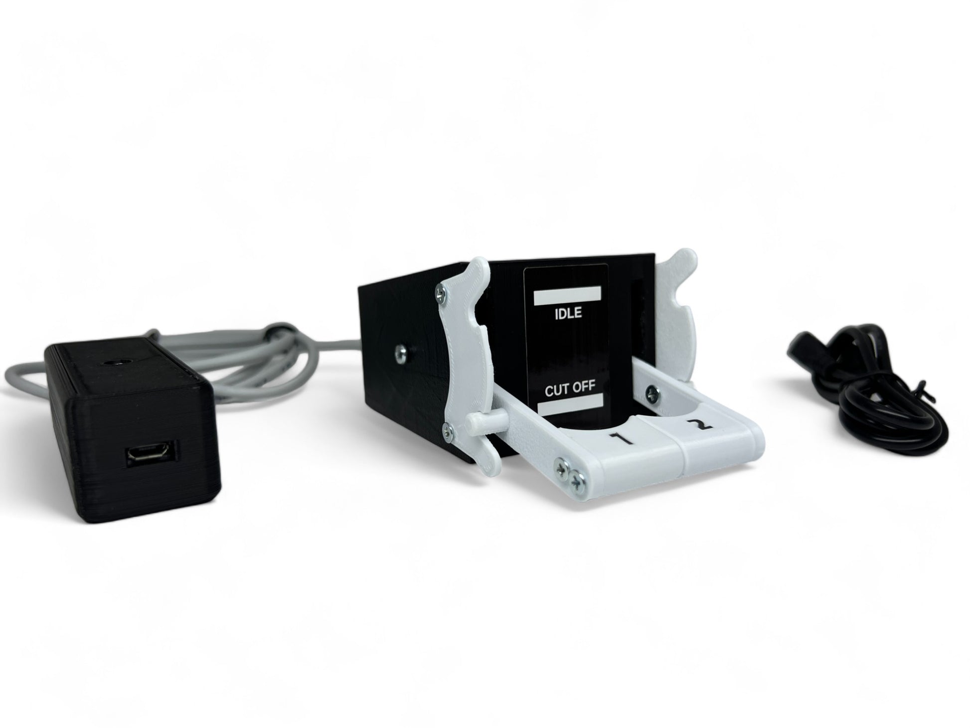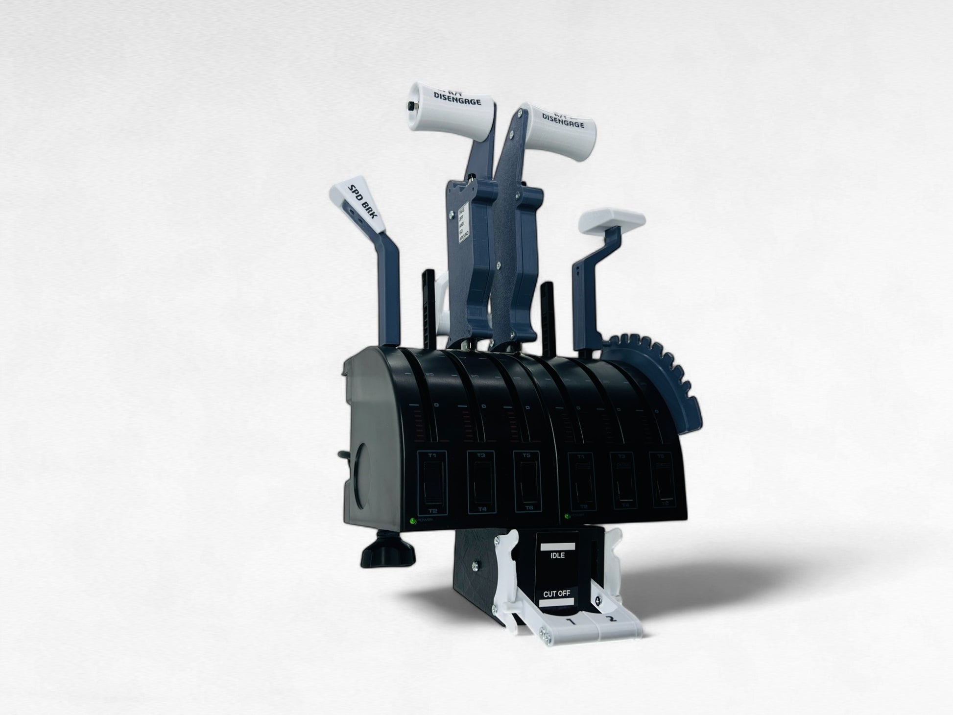 Fuel cut off levers module is inspired by the cut off lever on the Boeing 737 plane. This product brings realism to your home cockpit. Works great with Saitek throttle quadrant and Honeycomb Bravo Throttle Quadrant. You can use it as plug and play alone. When you pull it, it comes back on its own thanks to the springs (package rubber).